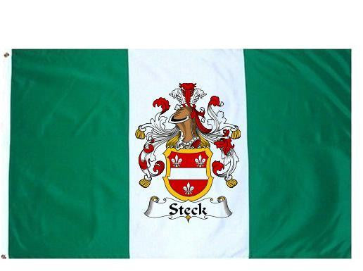 Steck Family Crest Flag / Coat of Arms Flag. You will receive a high quality 3' x 5' Polyester flag with two brass grommets. Proudly display your family heritage with this flag, or hang as a banner on a wall. Our flags make great gifts for birthdays, weddings, anniversaries, fathers day, mothers day, groomsmen gifts, and any other occasion
