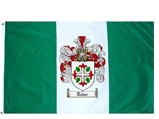 Tolar Family Crest Flag / Coat of Arms Flag. You will receive a high quality 3' x 5' Polyester flag with two brass grommets. Proudly display your family heritage with this flag, or hang as a banner on a wall. Our flags make great gifts for birthdays, weddings, anniversaries, fathers day, mothers day, groomsmen gifts, and any other occasion