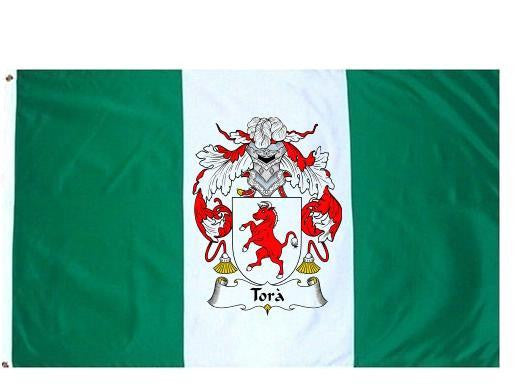 Tora Family Crest Flag / Coat of Arms Flag. You will receive a high quality 3' x 5' Polyester flag with two brass grommets. Proudly display your family heritage with this flag, or hang as a banner on a wall. Our flags make great gifts for birthdays, weddings, anniversaries, fathers day, mothers day, groomsmen gifts, and any other occasion