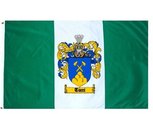 Tucci Family Crest Flag / Coat of Arms Flag. You will receive a high quality 3' x 5' Polyester flag with two brass grommets. Proudly display your family heritage with this flag, or hang as a banner on a wall. Our flags make great gifts for birthdays, weddings, anniversaries, fathers day, mothers day, groomsmen gifts, and any other occasion