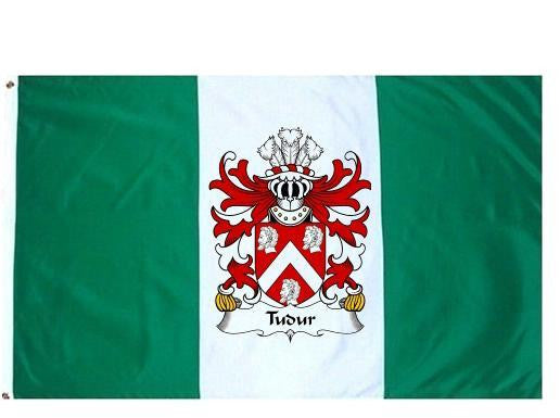 Tudur Family Crest Flag / Coat of Arms Flag. You will receive a high quality 3' x 5' Polyester flag with two brass grommets. Proudly display your family heritage with this flag, or hang as a banner on a wall. Our flags make great gifts for birthdays, weddings, anniversaries, fathers day, mothers day, groomsmen gifts, and any other occasion