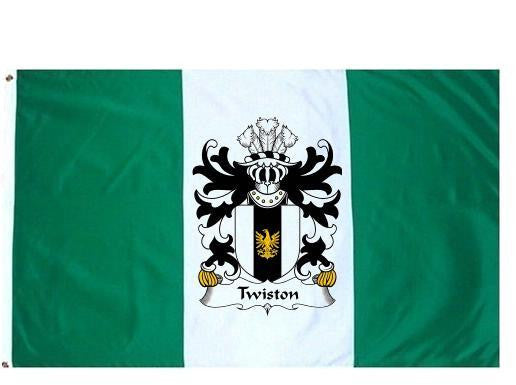 Twiston Family Crest Flag / Coat of Arms Flag. You will receive a high quality 3' x 5' Polyester flag with two brass grommets. Proudly display your family heritage with this flag, or hang as a banner on a wall. Our flags make great gifts for birthdays, weddings, anniversaries, fathers day, mothers day, groomsmen gifts, and any other occasion