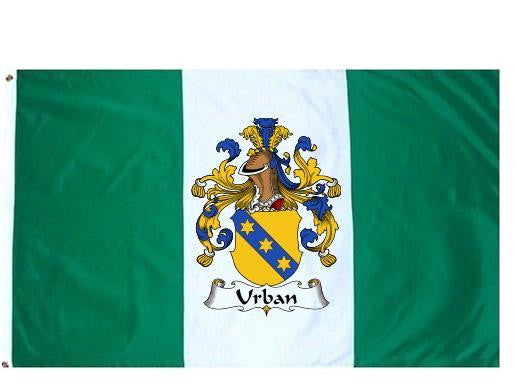 Urban Family Crest Flag / Coat of Arms Flag. You will receive a high quality 3' x 5' Polyester flag with two brass grommets. Proudly display your family heritage with this flag, or hang as a banner on a wall. Our flags make great gifts for birthdays, weddings, anniversaries, fathers day, mothers day, groomsmen gifts, and any other occasion