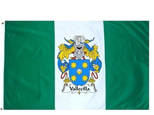 Vallecilla Family Crest Flag / Coat of Arms Flag. You will receive a high quality 3' x 5' Polyester flag with two brass grommets. Proudly display your family heritage with this flag, or hang as a banner on a wall. Our flags make great gifts for birthdays, weddings, anniversaries, fathers day, mothers day, groomsmen gifts, and any other occasion