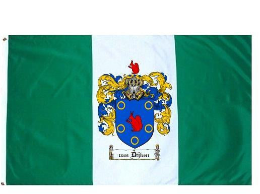 Vandijken Family Crest Flag / Coat of Arms Flag. You will receive a high quality 3' x 5' Polyester flag with two brass grommets. Proudly display your family heritage with this flag, or hang as a banner on a wall. Our flags make great gifts for birthdays, weddings, anniversaries, fathers day, mothers day, groomsmen gifts, and any other occasion