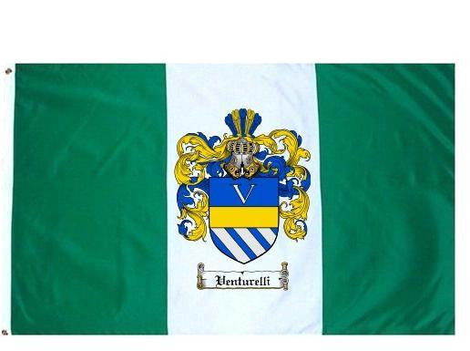 Venturelli Family Crest Flag / Coat of Arms Flag. You will receive a high quality 3' x 5' Polyester flag with two brass grommets. Proudly display your family heritage with this flag, or hang as a banner on a wall. Our flags make great gifts for birthdays, weddings, anniversaries, fathers day, mothers day, groomsmen gifts, and any other occasion