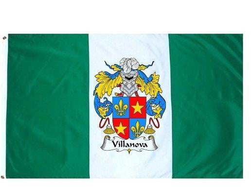 Villanova Family Crest Flag / Coat of Arms Flag. You will receive a high quality 3' x 5' Polyester flag with two brass grommets. Proudly display your family heritage with this flag, or hang as a banner on a wall. Our flags make great gifts for birthdays, weddings, anniversaries, fathers day, mothers day, groomsmen gifts, and any other occasion