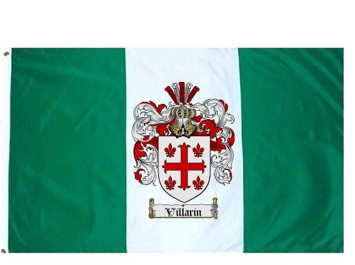 Villarin Family Crest Flag / Coat of Arms Flag. You will receive a high quality 3' x 5' Polyester flag with two brass grommets. Proudly display your family heritage with this flag, or hang as a banner on a wall. Our flags make great gifts for birthdays, weddings, anniversaries, fathers day, mothers day, groomsmen gifts, and any other occasion