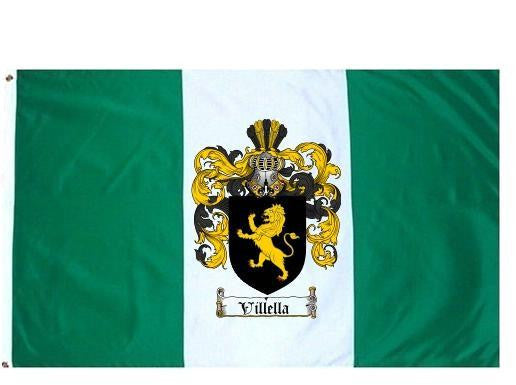 Villella Family Crest Flag / Coat of Arms Flag. You will receive a high quality 3' x 5' Polyester flag with two brass grommets. Proudly display your family heritage with this flag, or hang as a banner on a wall. Our flags make great gifts for birthdays, weddings, anniversaries, fathers day, mothers day, groomsmen gifts, and any other occasion
