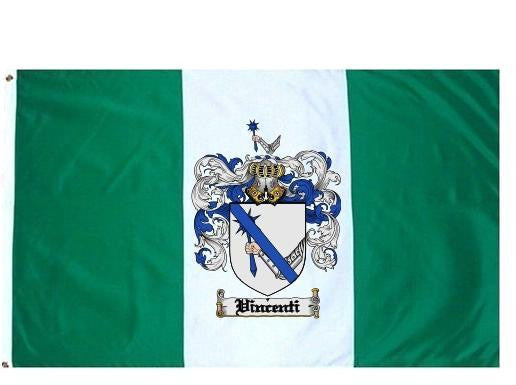 Vincenti Family Crest Flag / Coat of Arms Flag. You will receive a high quality 3' x 5' Polyester flag with two brass grommets. Proudly display your family heritage with this flag, or hang as a banner on a wall. Our flags make great gifts for birthdays, weddings, anniversaries, fathers day, mothers day, groomsmen gifts, and any other occasion