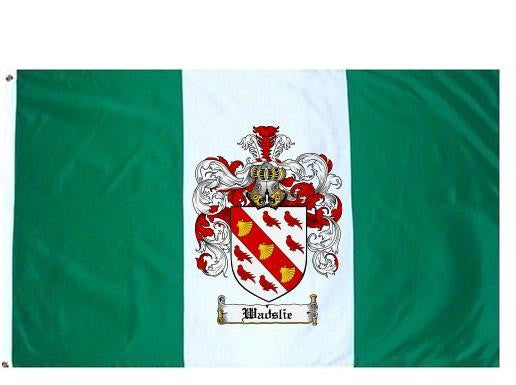 Wadslie Family Crest Flag / Coat of Arms Flag. You will receive a high quality 3' x 5' Polyester flag with two brass grommets. Proudly display your family heritage with this flag, or hang as a banner on a wall. Our flags make great gifts for birthdays, weddings, anniversaries, fathers day, mothers day, groomsmen gifts, and any other occasion