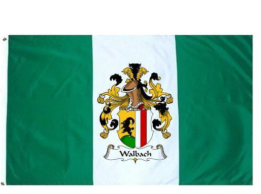 Walbach Family Crest Flag / Coat of Arms Flag. You will receive a high quality 3' x 5' Polyester flag with two brass grommets. Proudly display your family heritage with this flag, or hang as a banner on a wall. Our flags make great gifts for birthdays, weddings, anniversaries, fathers day, mothers day, groomsmen gifts, and any other occasion