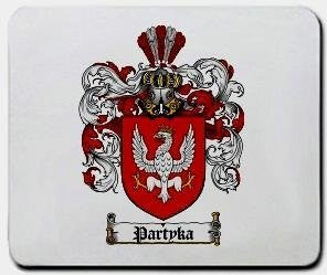 Partyka Coat of Arms / Family Crest Mouse Pad. Your Family Coat of Arms printed in full color on a high quality Mouse mat.