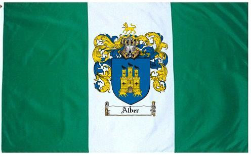 Alber Family Crest Flag / Coat of Arms Flag. You will receive a high quality 3' x 5' Polyester flag with two brass grommets. Proudly display your family heritage with this flag, or hang as a banner on a wall. Our flags make great gifts for birthdays, weddings, anniversaries, fathers day, mothers day, groomsmen gifts, and any other occasion