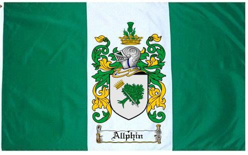 Allphin Family Crest Flag / Coat of Arms Flag. You will receive a high quality 3' x 5' Polyester flag with two brass grommets. Proudly display your family heritage with this flag, or hang as a banner on a wall. Our flags make great gifts for birthdays, weddings, anniversaries, fathers day, mothers day, groomsmen gifts, and any other occasion