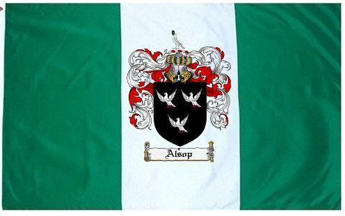 Alsop Family Crest Flag / Coat of Arms Flag. You will receive a high quality 3' x 5' Polyester flag with two brass grommets. Proudly display your family heritage with this flag, or hang as a banner on a wall. Our flags make great gifts for birthdays, weddings, anniversaries, fathers day, mothers day, groomsmen gifts, and any other occasion