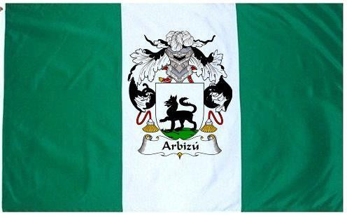 Arbizu Family Crest Flag / Coat of Arms Flag. You will receive a high quality 3' x 5' Polyester flag with two brass grommets. Proudly display your family heritage with this flag, or hang as a banner on a wall. Our flags make great gifts for birthdays, weddings, anniversaries, fathers day, mothers day, groomsmen gifts, and any other occasion