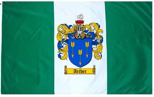 Archer Family Crest Flag / Coat of Arms Flag. You will receive a high quality 3' x 5' Polyester flag with two brass grommets. Proudly display your family heritage with this flag, or hang as a banner on a wall. Our flags make great gifts for birthdays, weddings, anniversaries, fathers day, mothers day, groomsmen gifts, and any other occasion