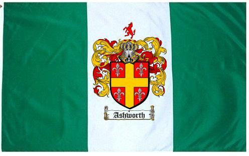 Ashworth Family Crest Flag / Coat of Arms Flag. You will receive a high quality 3' x 5' Polyester flag with two brass grommets. Proudly display your family heritage with this flag, or hang as a banner on a wall. Our flags make great gifts for birthdays, weddings, anniversaries, fathers day, mothers day, groomsmen gifts, and any other occasion