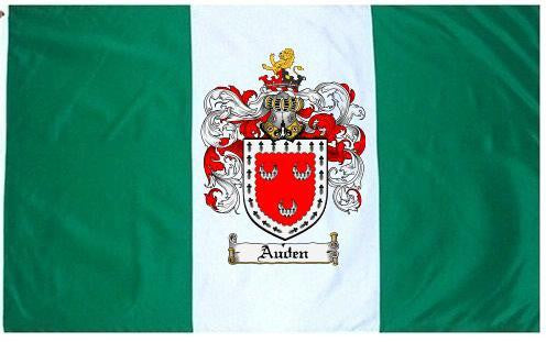 Auden Family Crest Flag / Coat of Arms Flag. You will receive a high quality 3' x 5' Polyester flag with two brass grommets. Proudly display your family heritage with this flag, or hang as a banner on a wall. Our flags make great gifts for birthdays, weddings, anniversaries, fathers day, mothers day, groomsmen gifts, and any other occasion