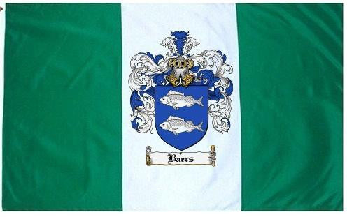 Baers Family Crest Flag / Coat of Arms Flag. You will receive a high quality 3' x 5' Polyester flag with two brass grommets. Proudly display your family heritage with this flag, or hang as a banner on a wall. Our flags make great gifts for birthdays, weddings, anniversaries, fathers day, mothers day, groomsmen gifts, and any other occasion