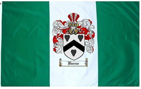 Barne Family Crest Flag / Coat of Arms Flag. You will receive a high quality 3' x 5' Polyester flag with two brass grommets. Proudly display your family heritage with this flag, or hang as a banner on a wall. Our flags make great gifts for birthdays, weddings, anniversaries, fathers day, mothers day, groomsmen gifts, and any other occasion