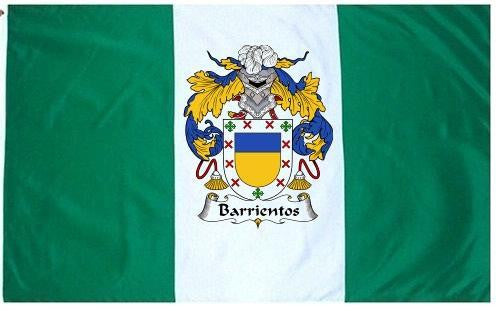 Barrientos Family Crest Flag / Coat of Arms Flag. You will receive a high quality 3' x 5' Polyester flag with two brass grommets. Proudly display your family heritage with this flag, or hang as a banner on a wall. Our flags make great gifts for birthdays, weddings, anniversaries, fathers day, mothers day, groomsmen gifts, and any other occasion