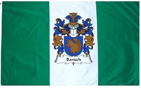 Bartsch Family Crest Flag / Coat of Arms Flag. You will receive a high quality 3' x 5' Polyester flag with two brass grommets. Proudly display your family heritage with this flag, or hang as a banner on a wall. Our flags make great gifts for birthdays, weddings, anniversaries, fathers day, mothers day, groomsmen gifts, and any other occasion