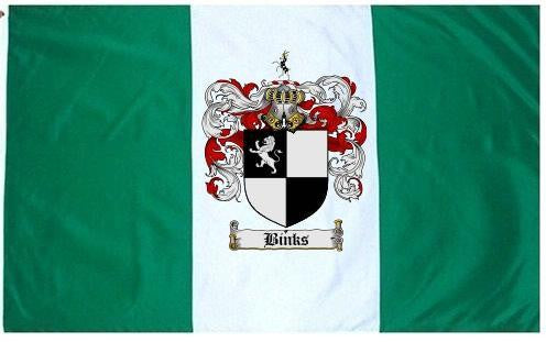 Binks Family Crest Flag / Coat of Arms Flag. You will receive a high quality 3' x 5' Polyester flag with two brass grommets. Proudly display your family heritage with this flag, or hang as a banner on a wall. Our flags make great gifts for birthdays, weddings, anniversaries, fathers day, mothers day, groomsmen gifts, and any other occasion