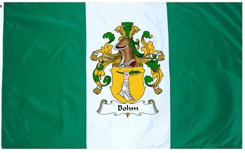 Bohm Family Crest Flag / Coat of Arms Flag. You will receive a high quality 3' x 5' Polyester flag with two brass grommets. Proudly display your family heritage with this flag, or hang as a banner on a wall. Our flags make great gifts for birthdays, weddings, anniversaries, fathers day, mothers day, groomsmen gifts, and any other occasion