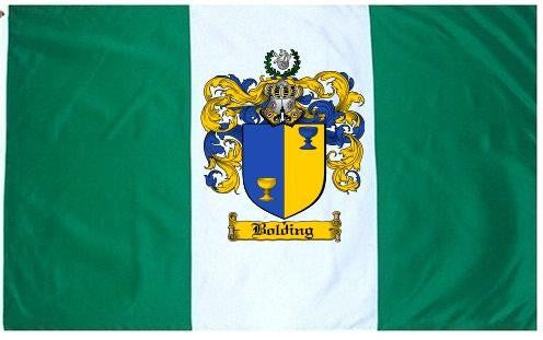 Bolding Family Crest Flag / Coat of Arms Flag. You will receive a high quality 3' x 5' Polyester flag with two brass grommets. Proudly display your family heritage with this flag, or hang as a banner on a wall. Our flags make great gifts for birthdays, weddings, anniversaries, fathers day, mothers day, groomsmen gifts, and any other occasion