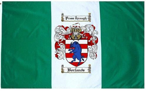 Borlands Family Crest Flag / Coat of Arms Flag. You will receive a high quality 3' x 5' Polyester flag with two brass grommets. Proudly display your family heritage with this flag, or hang as a banner on a wall. Our flags make great gifts for birthdays, weddings, anniversaries, fathers day, mothers day, groomsmen gifts, and any other occasion