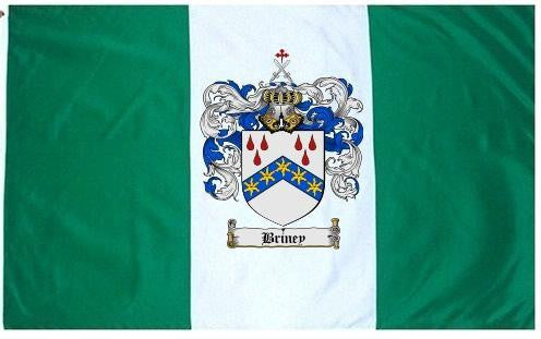 Briney Family Crest Flag / Coat of Arms Flag. You will receive a high quality 3' x 5' Polyester flag with two brass grommets. Proudly display your family heritage with this flag, or hang as a banner on a wall. Our flags make great gifts for birthdays, weddings, anniversaries, fathers day, mothers day, groomsmen gifts, and any other occasion