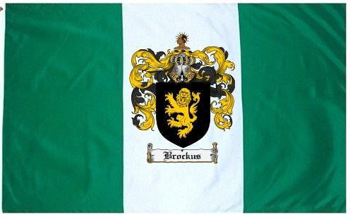 Brockus Family Crest Flag / Coat of Arms Flag. You will receive a high quality 3' x 5' Polyester flag with two brass grommets. Proudly display your family heritage with this flag, or hang as a banner on a wall. Our flags make great gifts for birthdays, weddings, anniversaries, fathers day, mothers day, groomsmen gifts, and any other occasion
