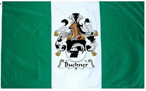 Buchner Family Crest Flag / Coat of Arms Flag. You will receive a high quality 3' x 5' Polyester flag with two brass grommets. Proudly display your family heritage with this flag, or hang as a banner on a wall. Our flags make great gifts for birthdays, weddings, anniversaries, fathers day, mothers day, groomsmen gifts, and any other occasion