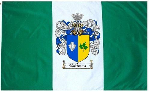 Bultman Family Crest Flag / Coat of Arms Flag. You will receive a high quality 3' x 5' Polyester flag with two brass grommets. Proudly display your family heritage with this flag, or hang as a banner on a wall. Our flags make great gifts for birthdays, weddings, anniversaries, fathers day, mothers day, groomsmen gifts, and any other occasion