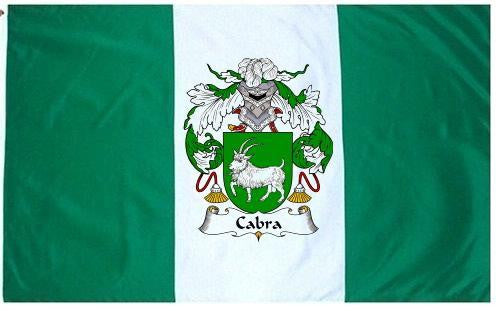 Cabra Family Crest Flag / Coat of Arms Flag. You will receive a high quality 3' x 5' Polyester flag with two brass grommets. Proudly display your family heritage with this flag, or hang as a banner on a wall. Our flags make great gifts for birthdays, weddings, anniversaries, fathers day, mothers day, groomsmen gifts, and any other occasion