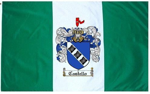 Castello Family Crest Flag / Coat of Arms Flag. You will receive a high quality 3' x 5' Polyester flag with two brass grommets. Proudly display your family heritage with this flag, or hang as a banner on a wall. Our flags make great gifts for birthdays, weddings, anniversaries, fathers day, mothers day, groomsmen gifts, and any other occasion