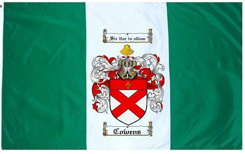 Cowens Family Crest Flag / Coat of Arms Flag. You will receive a high quality 3' x 5' Polyester flag with two brass grommets. Proudly display your family heritage with this flag, or hang as a banner on a wall. Our flags make great gifts for birthdays, weddings, anniversaries, fathers day, mothers day, groomsmen gifts, and any other occasion