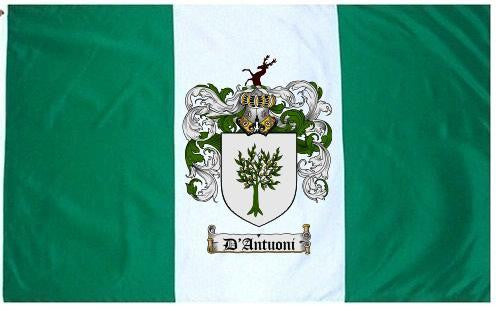 D'antuoni Family Crest Flag / Coat of Arms Flag. You will receive a high quality 3' x 5' Polyester flag with two brass grommets. Proudly display your family heritage with this flag, or hang as a banner on a wall. Our flags make great gifts for birthdays, weddings, anniversaries, fathers day, mothers day, groomsmen gifts, and any other occasion