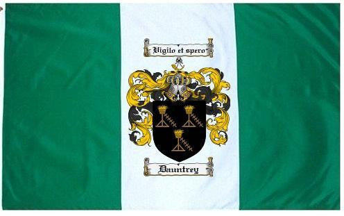 Dauntrey Family Crest Flag / Coat of Arms Flag. You will receive a high quality 3' x 5' Polyester flag with two brass grommets. Proudly display your family heritage with this flag, or hang as a banner on a wall. Our flags make great gifts for birthdays, weddings, anniversaries, fathers day, mothers day, groomsmen gifts, and any other occasion