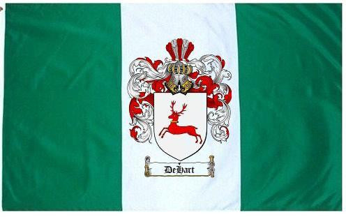 Dehart Family Crest Flag / Coat of Arms Flag. You will receive a high quality 3' x 5' Polyester flag with two brass grommets. Proudly display your family heritage with this flag, or hang as a banner on a wall. Our flags make great gifts for birthdays, weddings, anniversaries, fathers day, mothers day, groomsmen gifts, and any other occasion