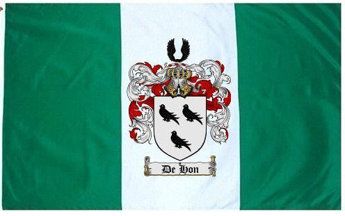 Dehon Family Crest Flag / Coat of Arms Flag. You will receive a high quality 3' x 5' Polyester flag with two brass grommets. Proudly display your family heritage with this flag, or hang as a banner on a wall. Our flags make great gifts for birthdays, weddings, anniversaries, fathers day, mothers day, groomsmen gifts, and any other occasion