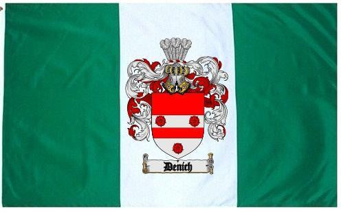 Denich Family Crest Flag / Coat of Arms Flag. You will receive a high quality 3' x 5' Polyester flag with two brass grommets. Proudly display your family heritage with this flag, or hang as a banner on a wall. Our flags make great gifts for birthdays, weddings, anniversaries, fathers day, mothers day, groomsmen gifts, and any other occasion