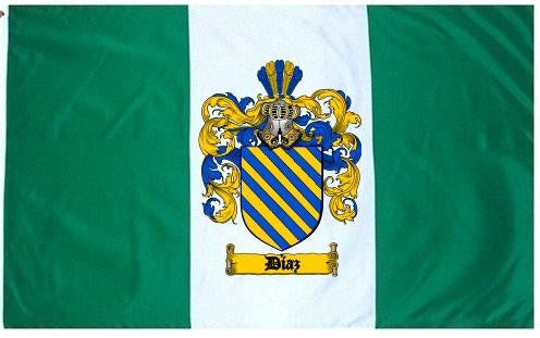 Diaz Family Crest Flag / Coat of Arms Flag. You will receive a high quality 3' x 5' Polyester flag with two brass grommets. Proudly display your family heritage with this flag, or hang as a banner on a wall. Our flags make great gifts for birthdays, weddings, anniversaries, fathers day, mothers day, groomsmen gifts, and any other occasion