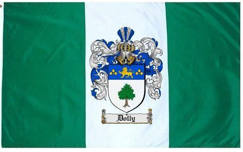 Dolly Family Crest Flag / Coat of Arms Flag. You will receive a high quality 3' x 5' Polyester flag with two brass grommets. Proudly display your family heritage with this flag, or hang as a banner on a wall. Our flags make great gifts for birthdays, weddings, anniversaries, fathers day, mothers day, groomsmen gifts, and any other occasion