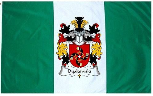 Dyakowski Family Crest Flag / Coat of Arms Flag. You will receive a high quality 3' x 5' Polyester flag with two brass grommets. Proudly display your family heritage with this flag, or hang as a banner on a wall. Our flags make great gifts for birthdays, weddings, anniversaries, fathers day, mothers day, groomsmen gifts, and any other occasion