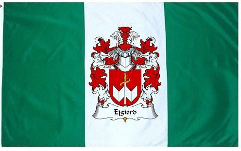 Ejgierd Family Crest Flag / Coat of Arms Flag. You will receive a high quality 3' x 5' Polyester flag with two brass grommets. Proudly display your family heritage with this flag, or hang as a banner on a wall. Our flags make great gifts for birthdays, weddings, anniversaries, fathers day, mothers day, groomsmen gifts, and any other occasion