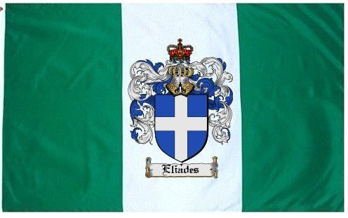Eliades Family Crest Flag / Coat of Arms Flag. You will receive a high quality 3' x 5' Polyester flag with two brass grommets. Proudly display your family heritage with this flag, or hang as a banner on a wall. Our flags make great gifts for birthdays, weddings, anniversaries, fathers day, mothers day, groomsmen gifts, and any other occasion