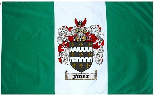 Ference Family Crest Flag / Coat of Arms Flag. You will receive a high quality 3' x 5' Polyester flag with two brass grommets. Proudly display your family heritage with this flag, or hang as a banner on a wall. Our flags make great gifts for birthdays, weddings, anniversaries, fathers day, mothers day, groomsmen gifts, and any other occasion
